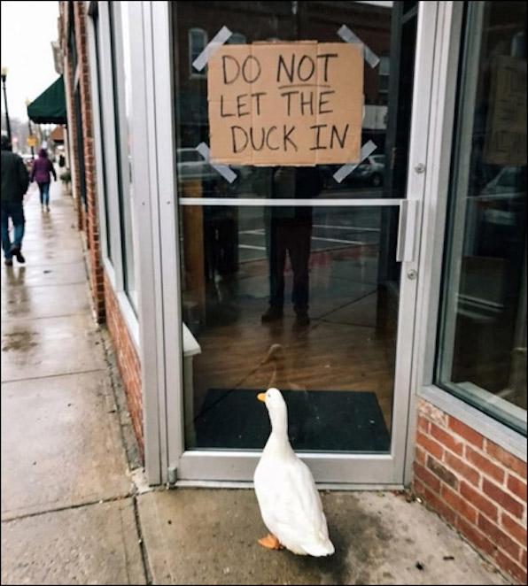 Okay, so how many times did someone let the duck in before they put up the sign???